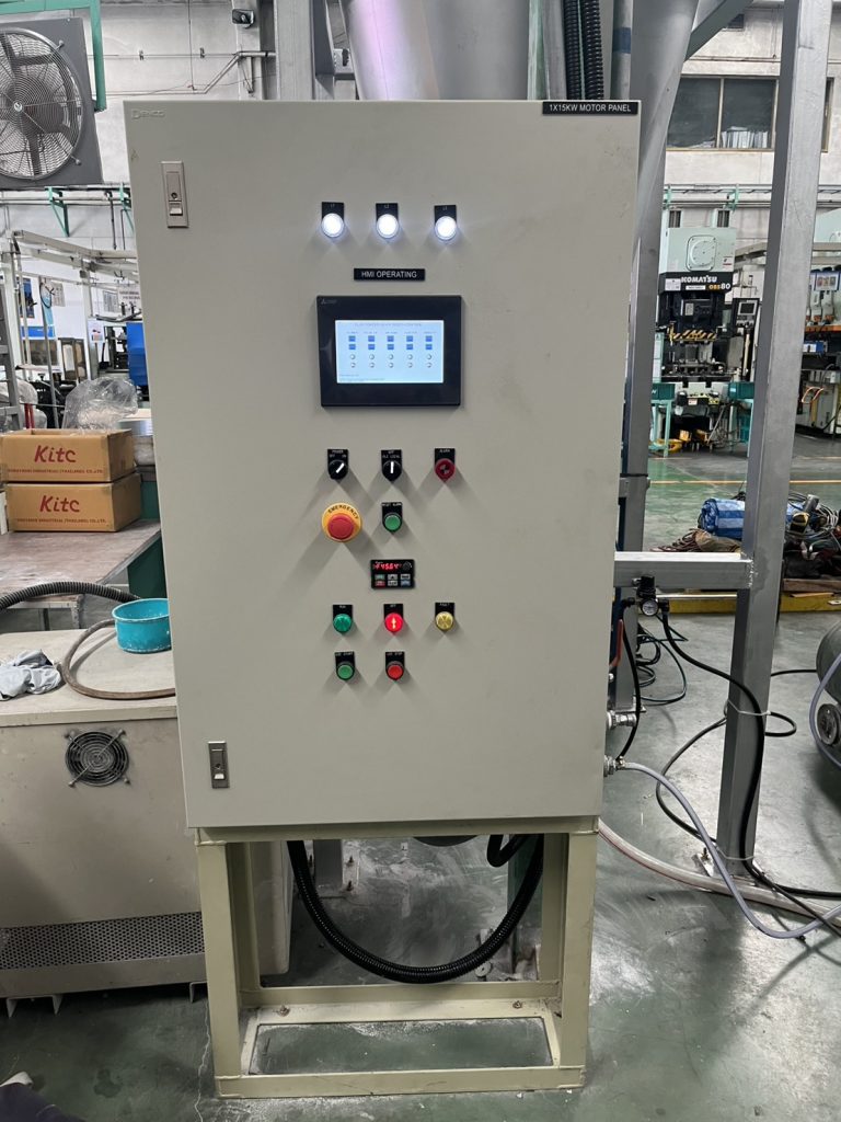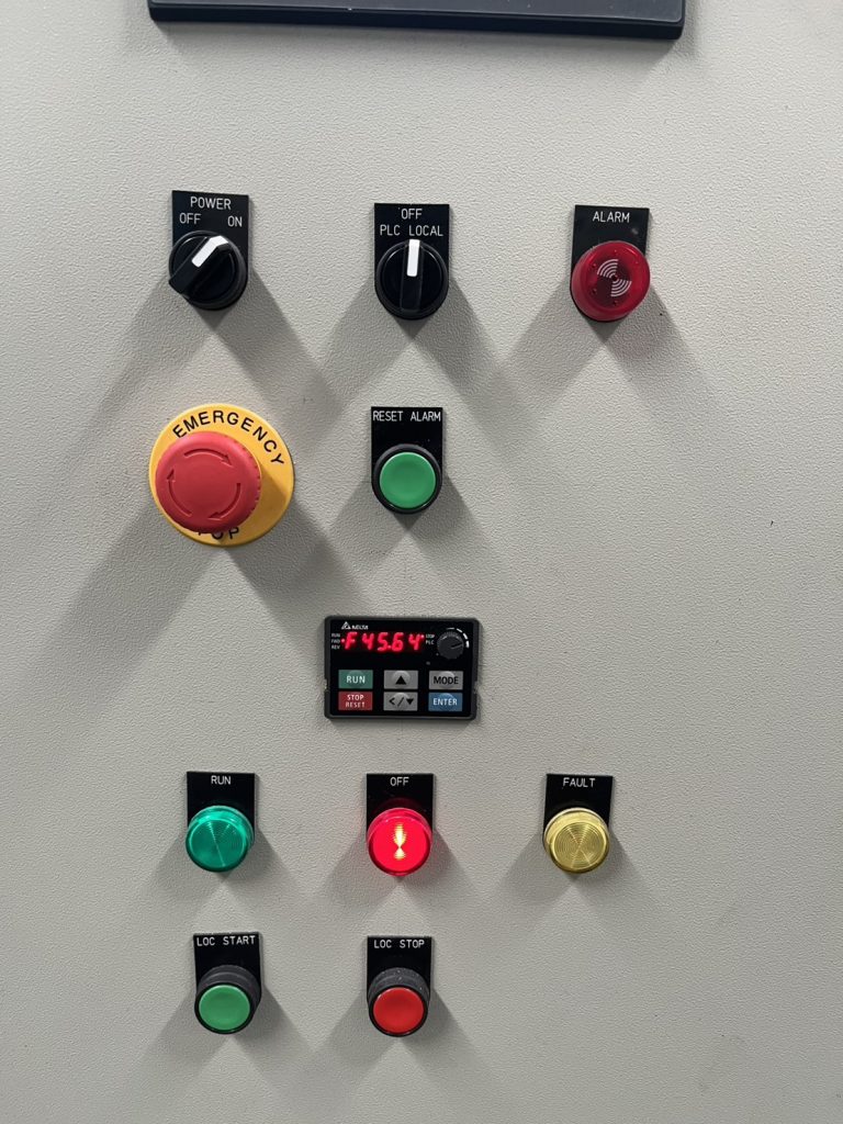 ตู้ควบคุมชุดนี้ได้รับการออกแบบให้ใช้งานง่ายและตอบโจทย์โรงงานอุตสาหกรรม โดยผู้ใช้งานสามารถสั่ง ON / OFF ระบบผ่านหน้าจอ HMI ได้สะดวก พร้อมแสดงสถานะการทำงานแบบ Real-time ลดขั้นตอนการทำงานและช่วยให้ตรวจสอบระบบได้ง่ายขึ้น
