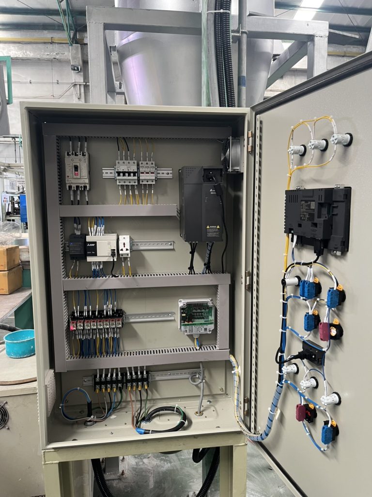 ตู้ควบคุมระบบพ่นสี Flux Powder Spray Booth Control ใช้ PLC Mitsubishi และ Inverter Delta